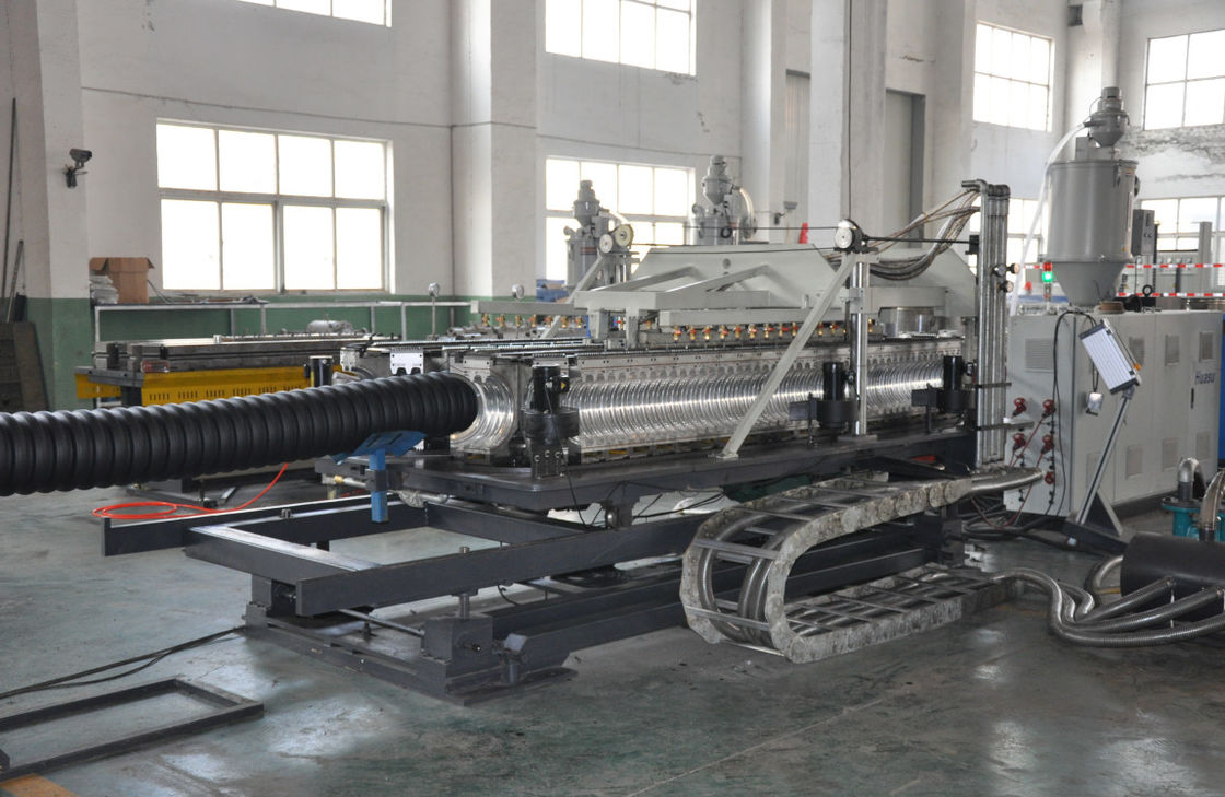 SBG250 (ID90mm - 250mm) double wall corrugated pipe line adopts two single screw extruders, double channel structure, nitriding polishing treatment die head.