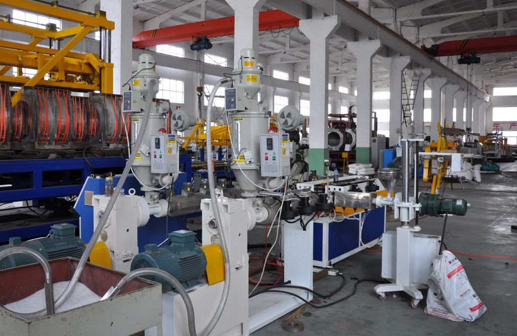 This signle wall corrugated pipe extrusion line mainly contains extruder, corrugated forming machine, die head and mold blocks, cooling equipment, counting machine and winding machine. It can continuously produce many kinds of diameter single wall corrugated pipes.