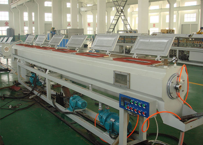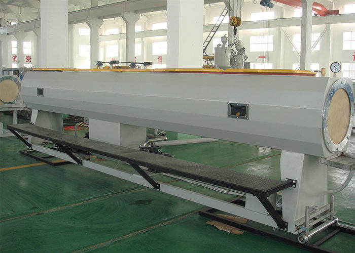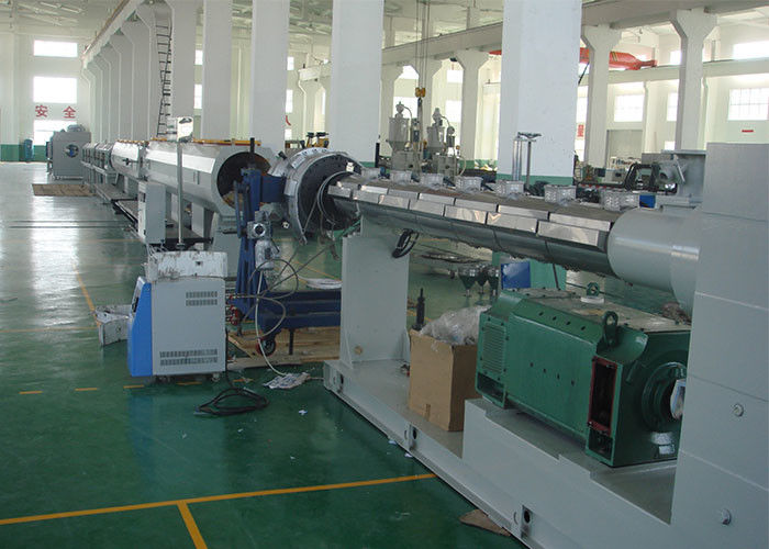 PE plastic pipe production line is mainly used for producing water supply pipe and drainage pipe in the field of agriculture and construction, cable etc. This production line consists mainly of single screw extruder, vacuum calibration tank, spraying cooling tank, haul-off machine, cutter, stacker etc.