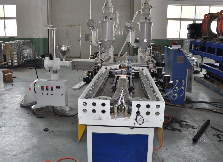 HD Pipe Making Machine adopts special gear box,and has features of low noisy ,stable running ,high carrying capacity,long service life .Equipped with different mold and auxiliary equipments,it could produce plastic pipe ,sheet ,board, granules and so on .It has features of simple process,high output ,stable extrusion pressure,and low cost.