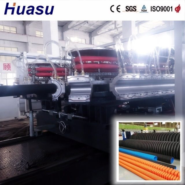 The double wall corrugated pipe line represents the third generation enhanced product from Shandong HUASU, delivering a remarkable 20-40% increase in both extruder output and production speed compared to previous models.